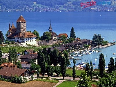 Jezioro, Szwajcaria, Zamek, Spiez, Thun