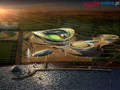 Stadiony, Jezioro, Słońca, Jachty, Projekt, Drzewa, Zachód