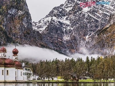Jezioro Königssee, Bawaria, Góry, Niemcy, Miejscowość Schönau am Königssee, Kościół św. Bartłomieja