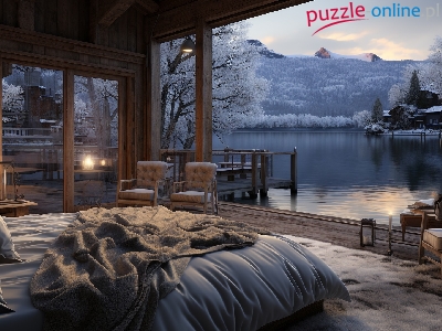 Wnętrze, Jezioro, Sypialnia, Grafika, Zima