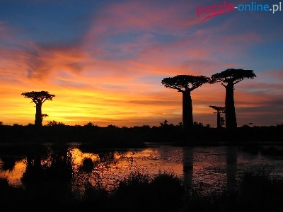 Puzzle Jezioro, Baobab, Zachód Słońca