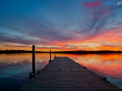 Puzzle Jezioro, Pomost, Zachód Słońca