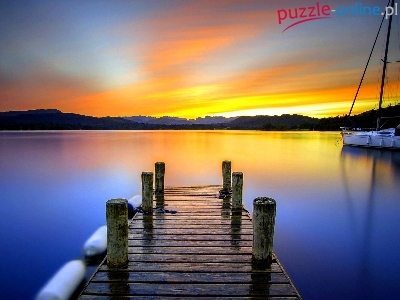 Puzzle Jezioro, Pomost, Zachód Słońca