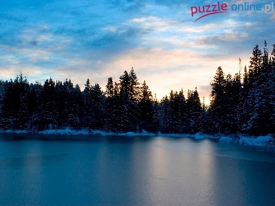 Puzzle Śnieg, Zamarznięte, Jezioro, Las