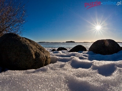 Jezioro, Promienie Słońca, Zima, Zamarznięte, Kamienie