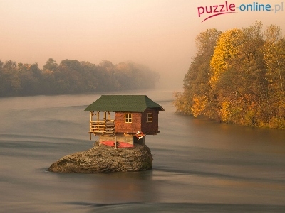 Puzzle Jeziorze, Domek, Na, Drzewa