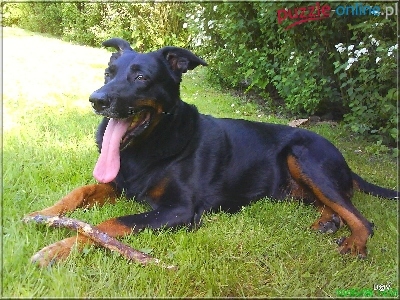 Puzzle jęzor, Owczarek francuski Beauceron, kij