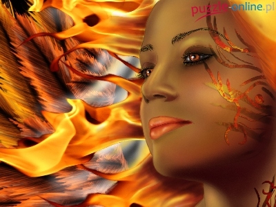Puzzle Języki, Kobieta, Fantasy, Ognia