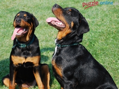 Puzzle Języki, Dwa, Rottweilery, Trawa