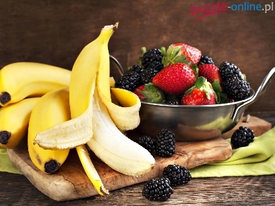 Jeżyny, Deska, Banany, Truskawki, Miseczka