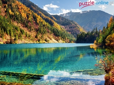 Park Narodowy Jiuzhaigou, Góry, Drzewa, Las, Chiny, Jesień, Jezioro Arrow Bamboo