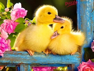 Puzzle Kaczuszki, Dwie, Małe, Kwiaty