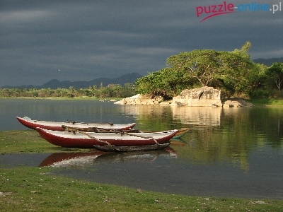 Brzeg, Kajaki, Sri Lanka, Jezioro, Skalisty, Drzewa