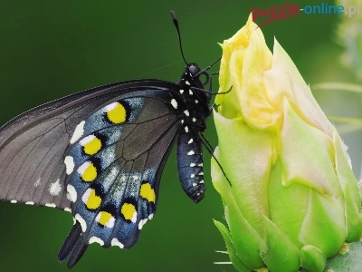 Puzzle Kaktus, Czarny, Motyl, Kwiat