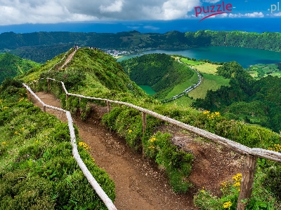 Wyspa Sao Miguel, Droga, Azory, Portugalia, Jezioro, Szlak, Miradouro da Boca do Inferno, Lagoa Rasa, Góry, Kaldera