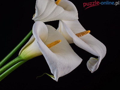 Puzzle Czarne tło, Kwiaty, Kalie