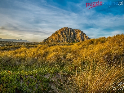 Trawa, Morro Rock, Góra, Skała, Rośliny, Kalifornia, Stany Zjednoczone, Żółta, Księżyc