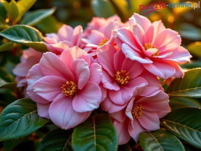 Puzzle Liście, Kamelie, Kwiaty, Grafika AI
