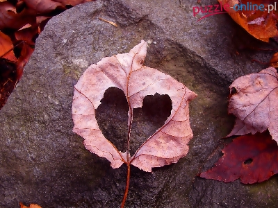Puzzle Kamień, Jesień, Liście, Serce