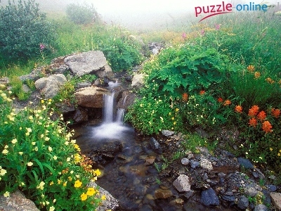 Puzzle Kamienia, Wodospad, Strumyk, Kwiaty