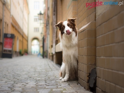 Puzzle Kamienice, Pies, Border collie, Uliczka