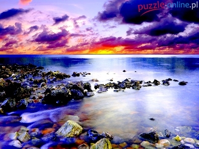 Kamienie, Słońca, Morze, Brzeg, Zachód