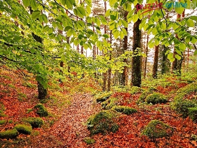 Kamienie, Jesień, Las, Ścieżka, Liście