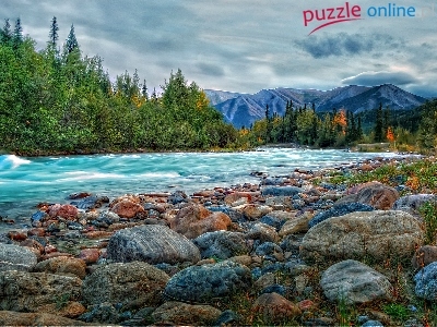Puzzle Kamienie, Góry, Jezioro, Chmury