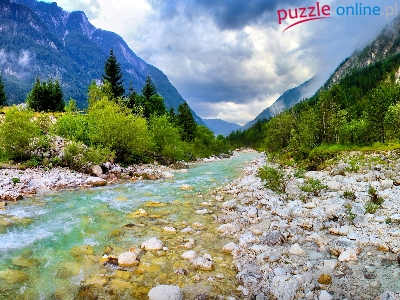 Kamienie, Chmury, Rzeka, Lasy, Góry