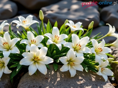 Puzzle Lilie, Białe, Rozkwitnięte, Kamienie