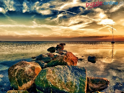 Puzzle Kamienie, Plaża, Morze, Chmury