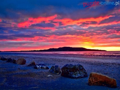 Kamienie, Słońca, Morze, Plaża, Zachód