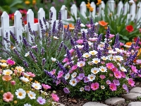 Płot, Kolorowe, Kwiaty, Kamienie
