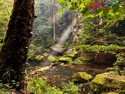 Puzzle Kamienie, Las, Rzeka, Przebijające światło