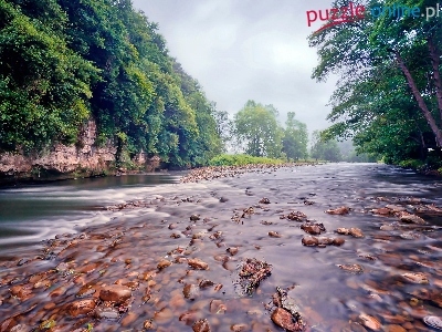 Puzzle Kamienie, Drzewa, Rzeka, Mgła