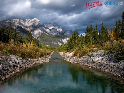 Kamienie, Świerki, Góry, Rzeka, Drzewa