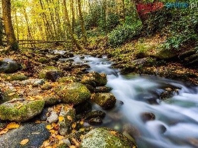Kamienie, Drzewa, Jesień, Rzeka, Las