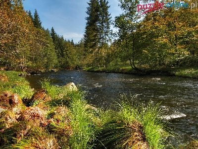Puzzle Kamienie, Las, Rzeka, Rośliny