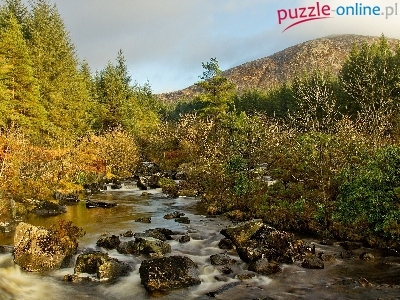 Puzzle Świerki, Rzeka, Kamienie, Wzgórze