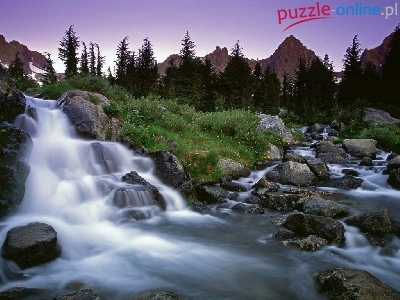 Kamienie, Drzewa, Wodospad, Rzeka, Góry