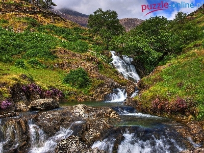 Puzzle Kamienie, Wodospad, Rzeka, Roślinność