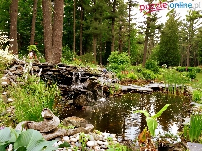 Kamienie, Ogród, Staw, Leśny, Skałki, Kaskada