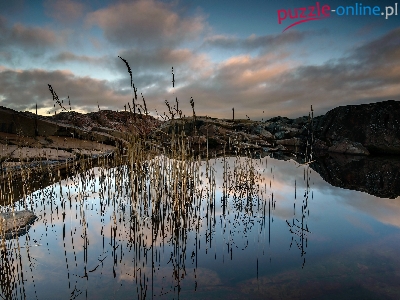 Kamienie, Trawy, Jezioro, Skały, Suche