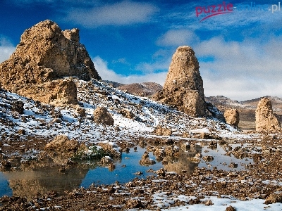 Puzzle Śnieg, Skały, Kamienie, Niebo