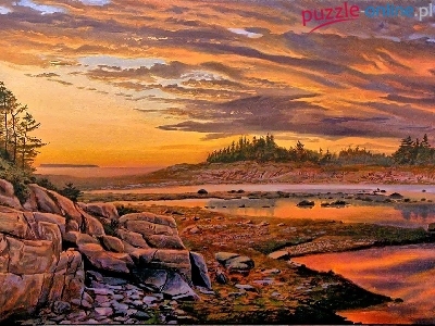Puzzle Kamienie, Zachód, Słońca, Drzewa