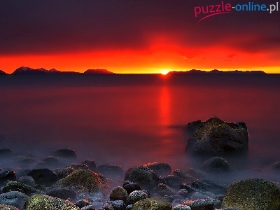 Puzzle Kamienie, Zachód, Słońca, Morze