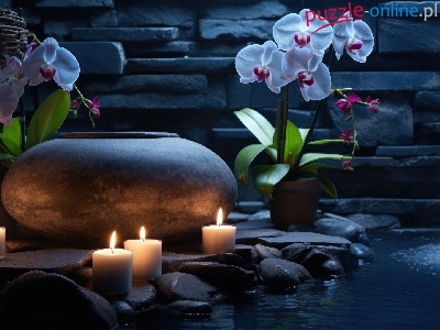 Świece, Kamienie, Storczyki, Kompozycja, Grafika