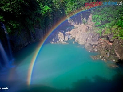 Puzzle Kamienie, Wodospad, Tęcza, Drzewa