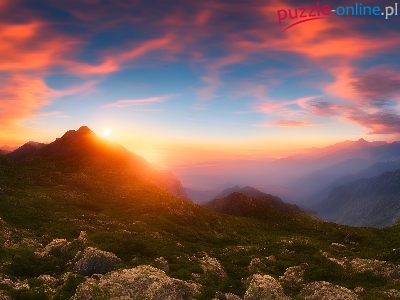 Łąka, Góry, Trawa, Chmury, Zachód Słońca, Wzgórza, Kamienie