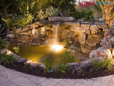 Kamienie, Oświetlenie, Oczko, Wodne, Rośliny